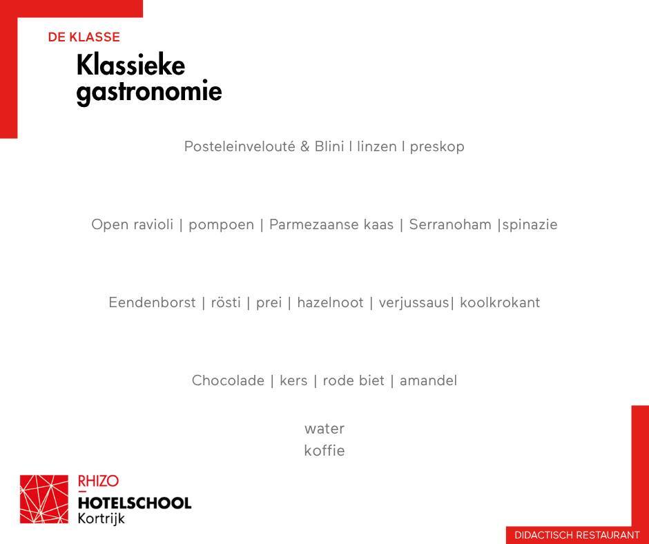 We stellen je graag onze menu voor de klassieke gastronomie voor. Te verkrijgen van 13 oktober tot en met 14 november.